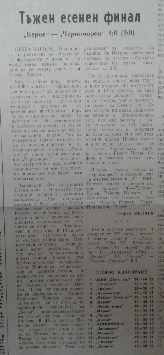 «Берое» Стара-Загора - «Черноморец» Бургас - 4:0
