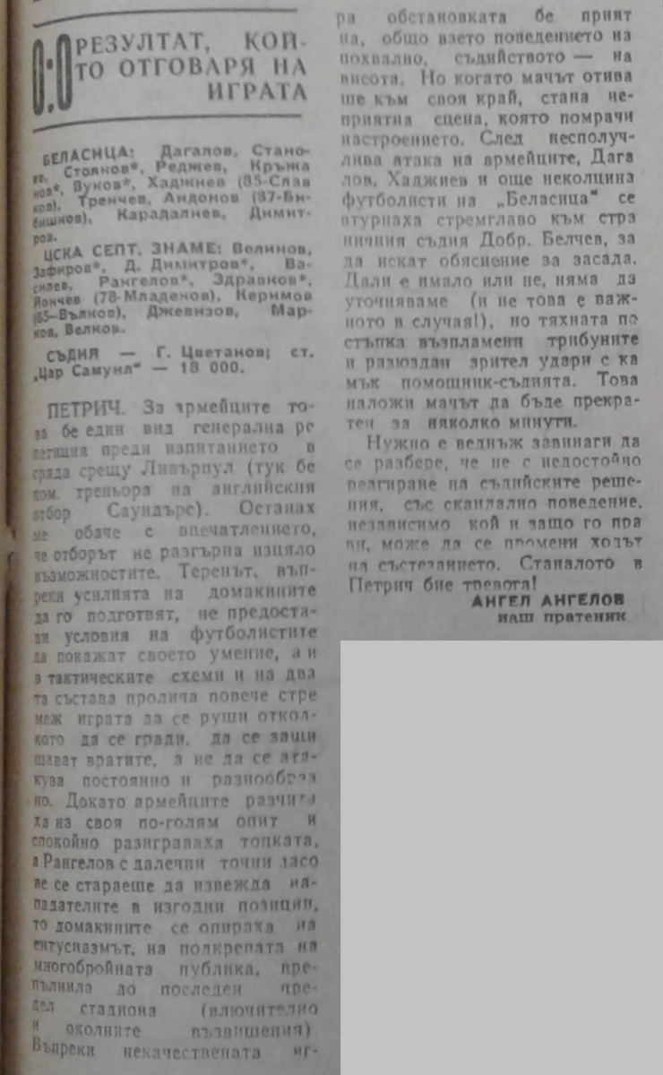«Беласица» Петрич - «ЦСКА Септемврийско Знаме» София - 0:0