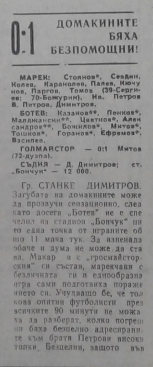 «Марек» Станке-Димитров - «Ботев» Враца - 0:1