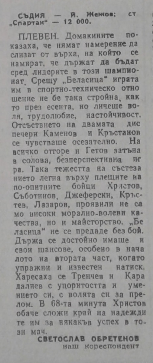 «Спартак» Плевен - «Беласица» Петрич - 2:0