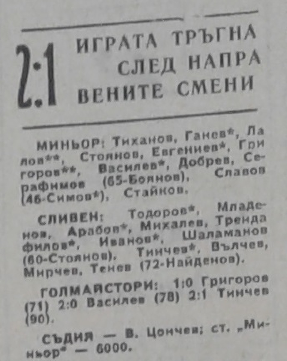 «Минёр» Перник - АФД Сливен - 2:1