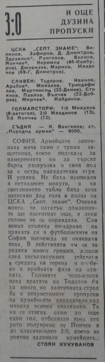 «ЦСКА Септемврийско Знаме» София - АФД Сливен - 3:0