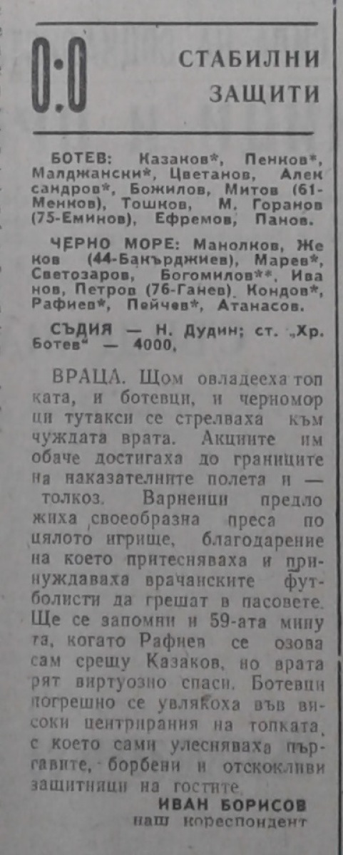 «Ботев» Враца - «Черно море» Варна - 0:0