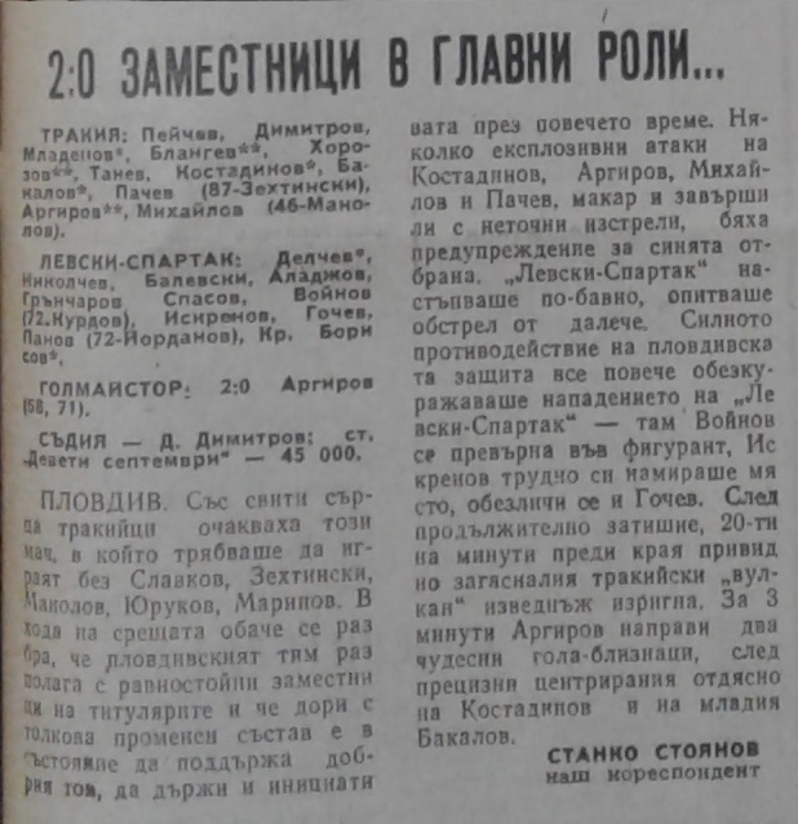 «Тракия» Пловдив - «Левски-Спартак» София - 2:0