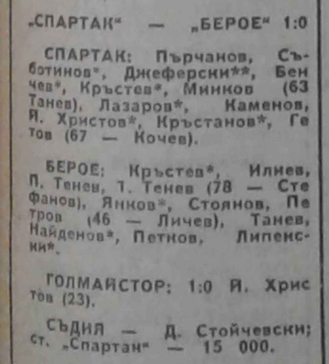 «Спартак» Плевен - «Берое» Стара-Загора - 1:0