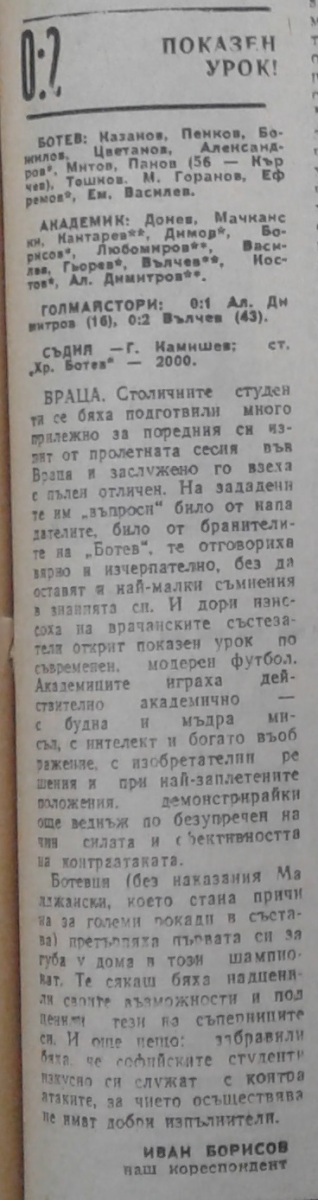«Ботев» Враца - «Академик» София - 0:2