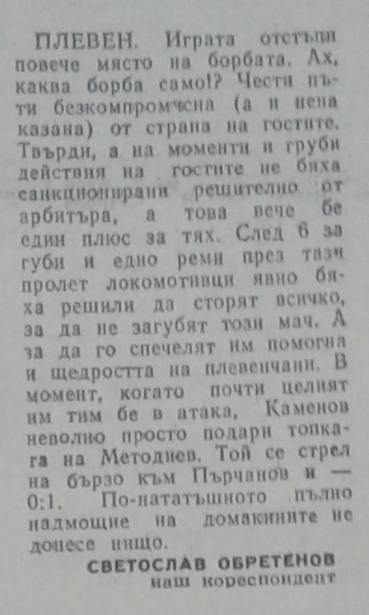 «Спартак» Плевен - «Локомотив» София - 0:1