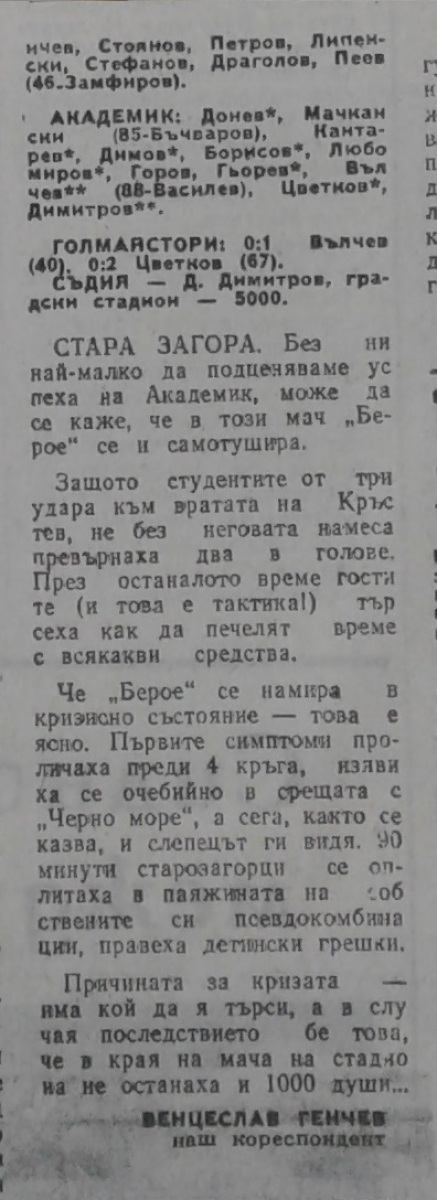 «Берое» Стара-Загора - «Академик» София - 0:2