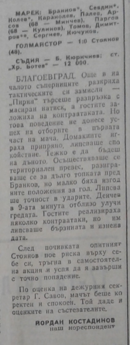 «Пирин» Благоевград - «Марек» Станке-Димитров - 1:0