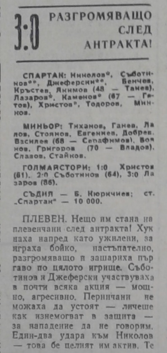 «Спартак» Плевен - «Минёр» Перник - 3:0