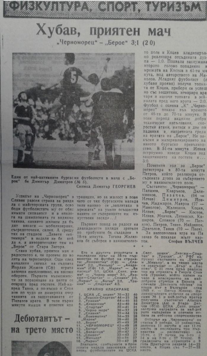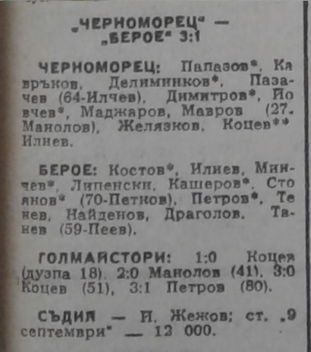 «Черноморец» Бургас - «Берое» Стара-Загора - 3:1