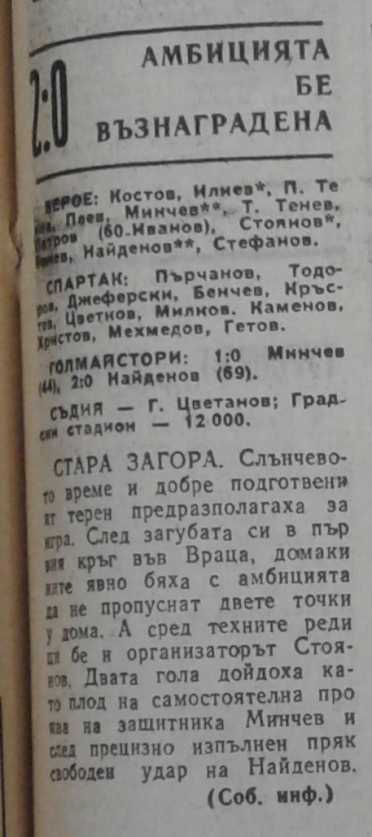 «Берое» Стара-Загора - «Спартак» Плевен - 2:0