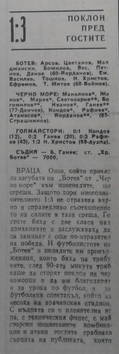 «Ботев» Враца - «Черно море» Варна - 1:3