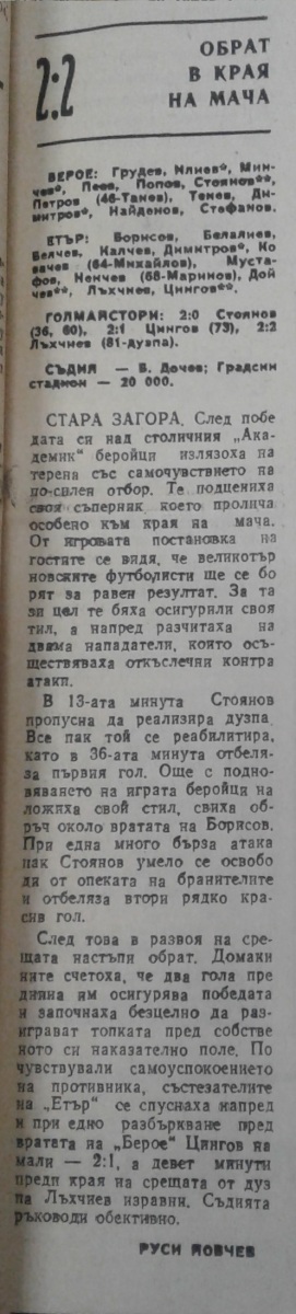 «Берое» Стара-Загора - «Этыр» Велико-Тырново - 2:2