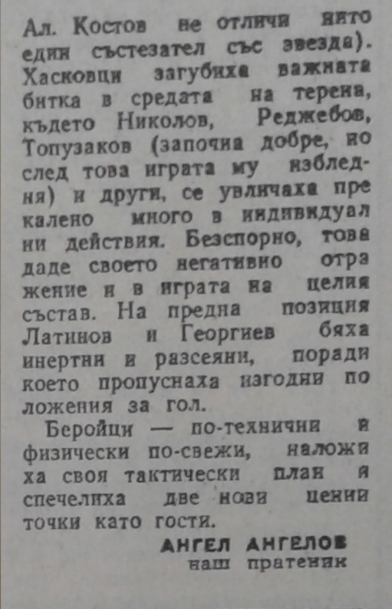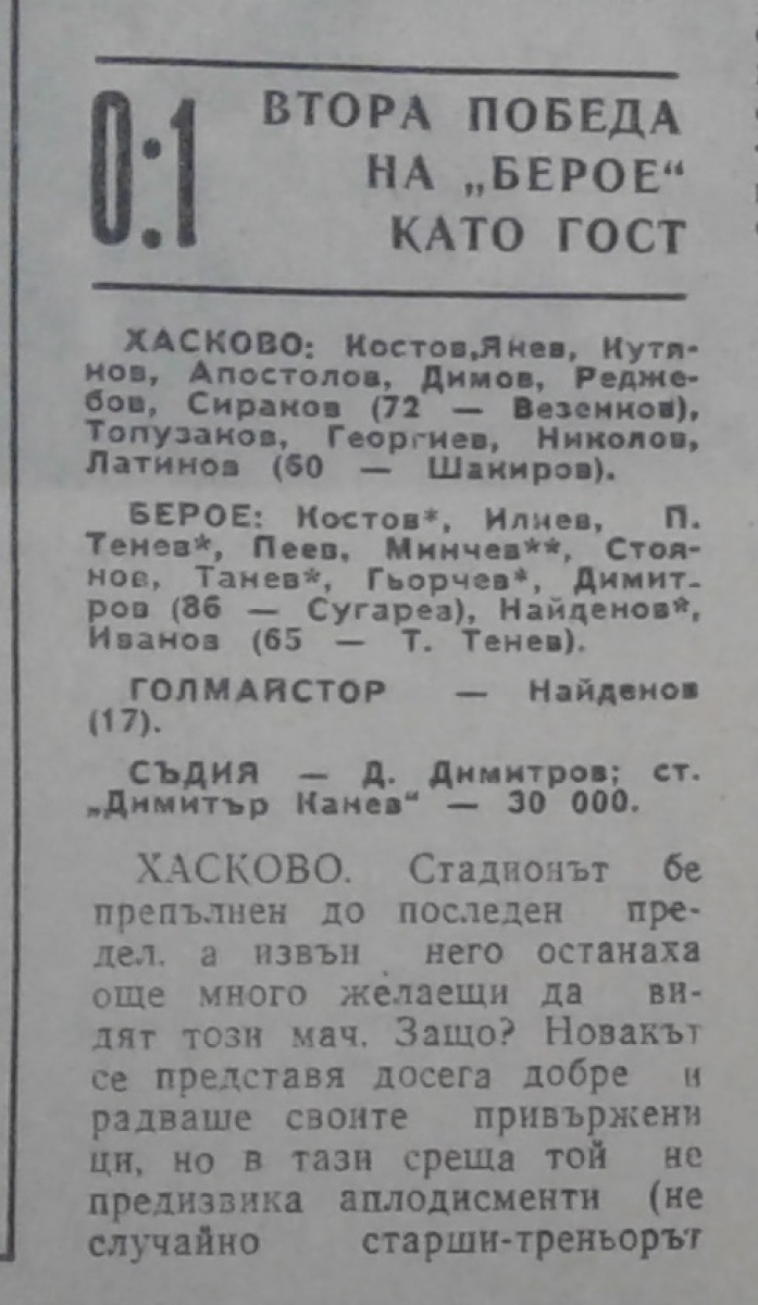 «Хасково» Хасково - «Берое» Стара-Загора - 0:1
