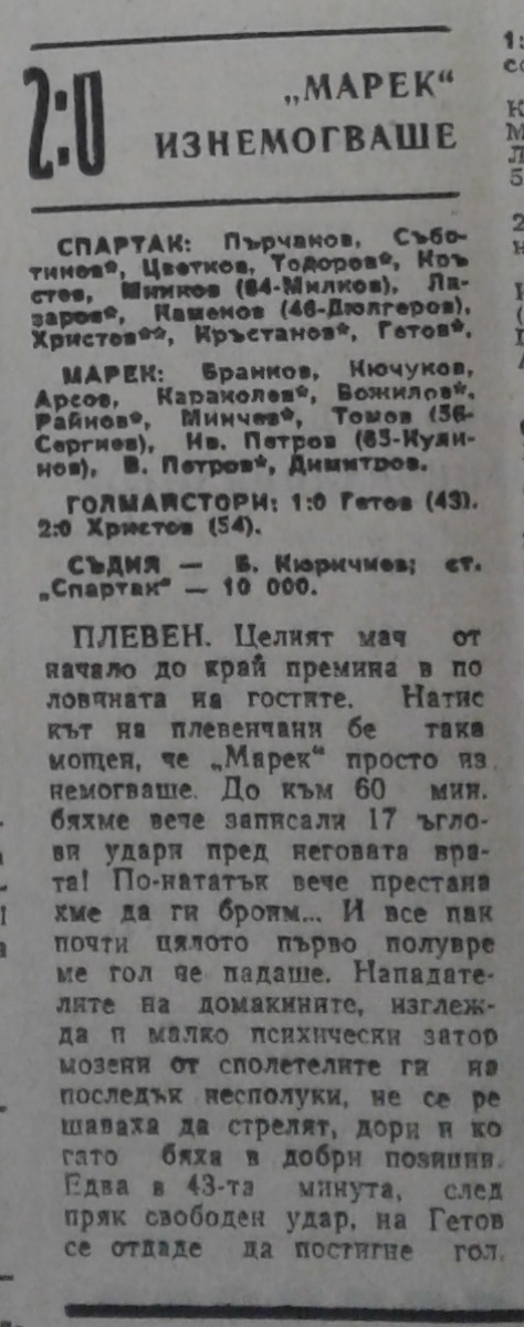 «Спартак» Плевен - «Марек» Станке-Димитров - 2:0