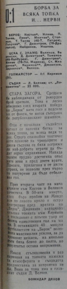 «Берое» Стара-Загора - «ЦСКА Септемврийско Знаме» София - 0:1
