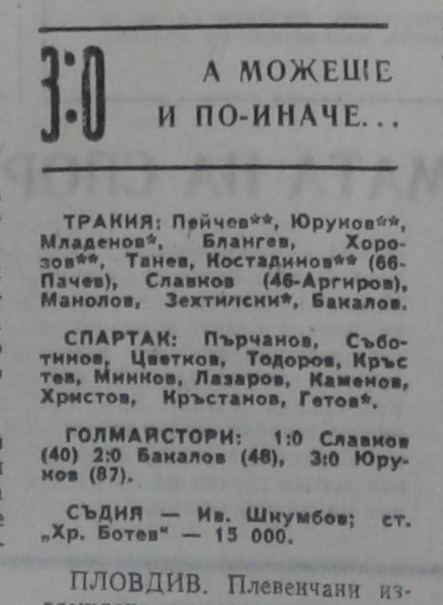 «Тракия» Пловдив - «Спартак» Плевен - 3:0