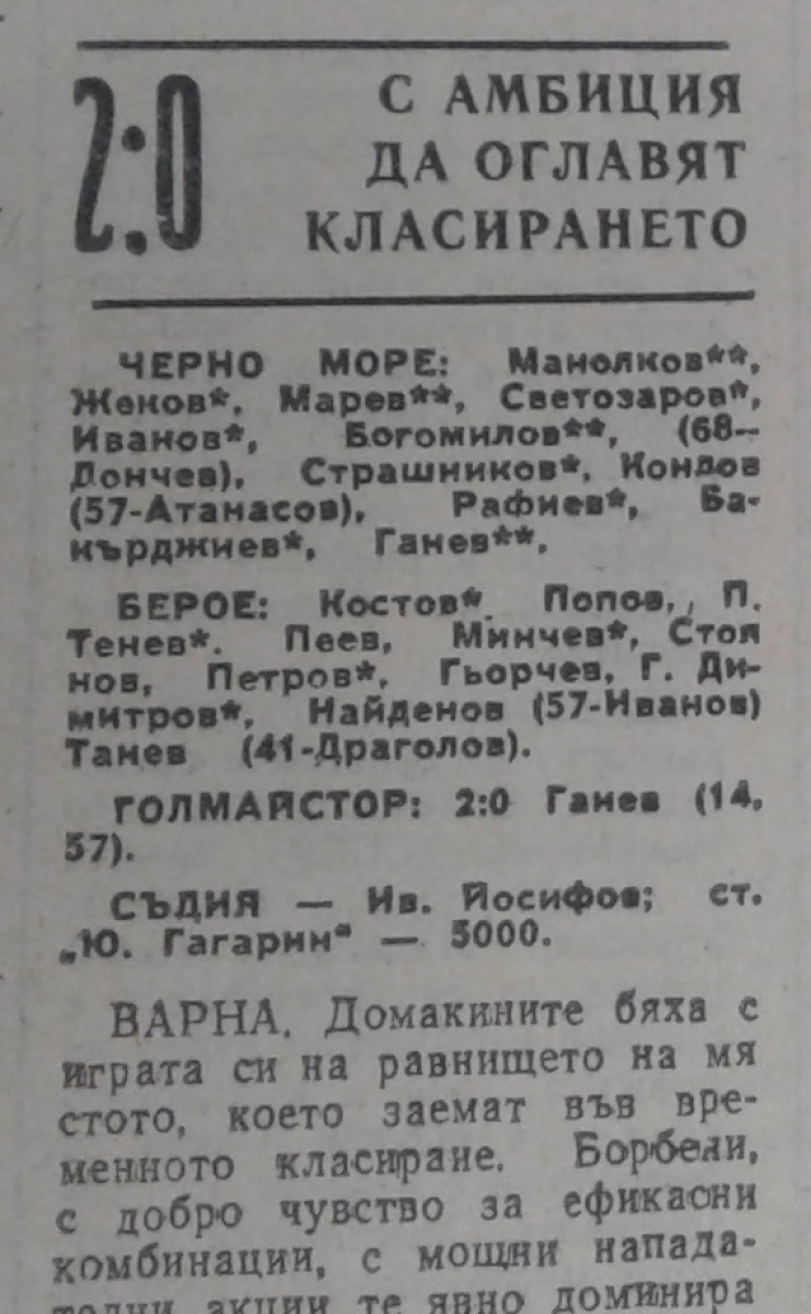 «Черно море» Варна - «Берое» Стара-Загора - 2:0