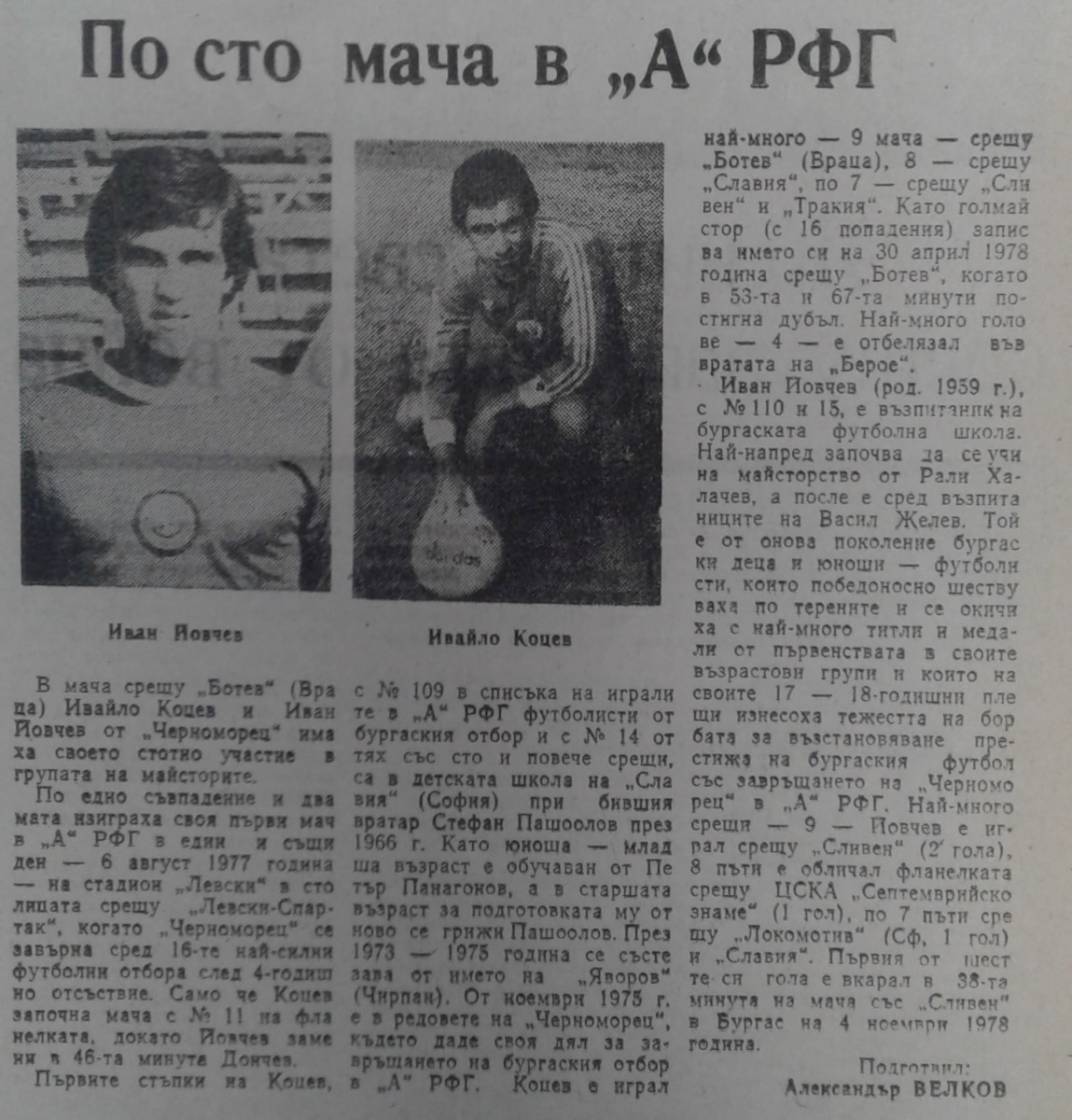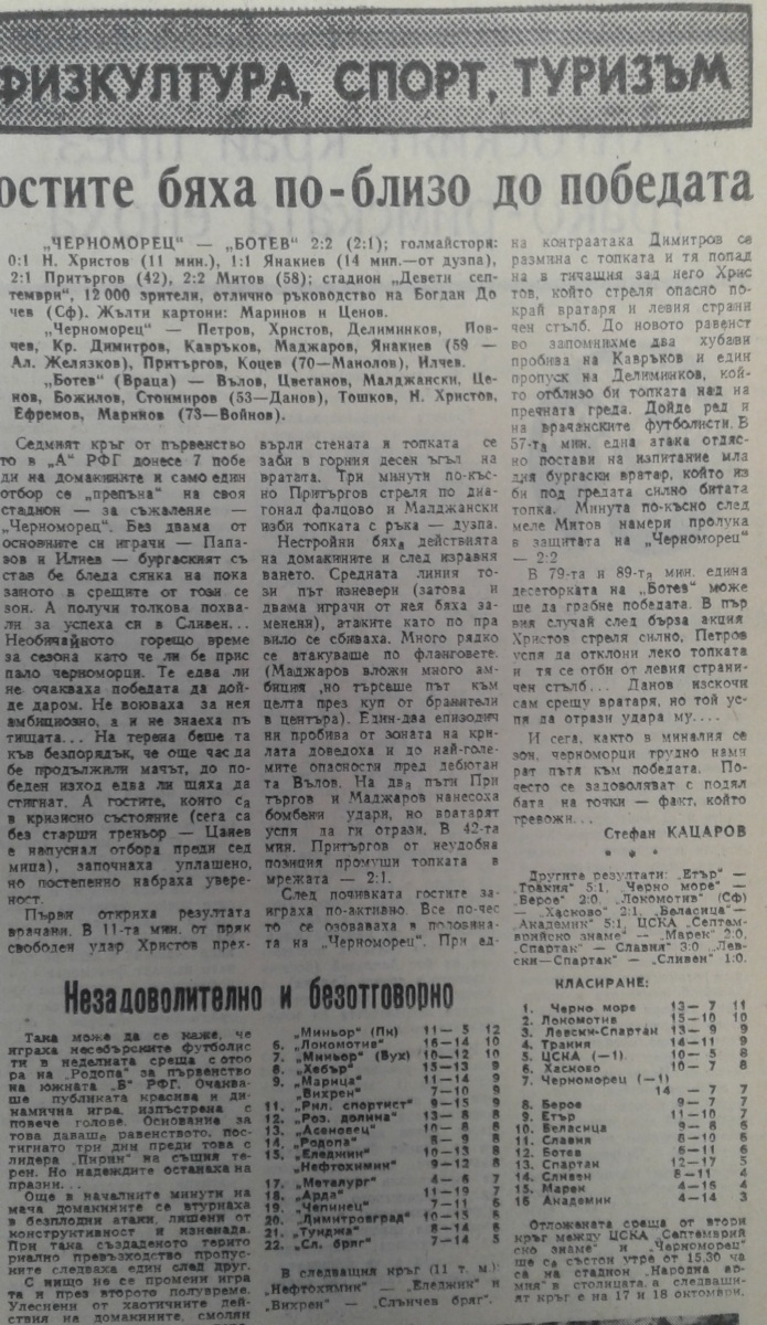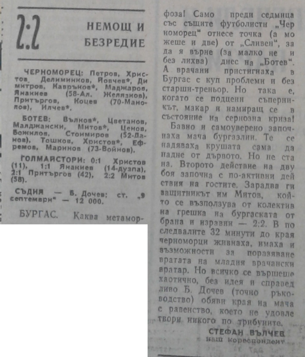 Венцислав Божилов (Ботев) провёл свой 100-й матч в А РФГ.. Илия Валов (Ботев) и Румен Стоимиров (Ботев) дебютировали в А РФГ