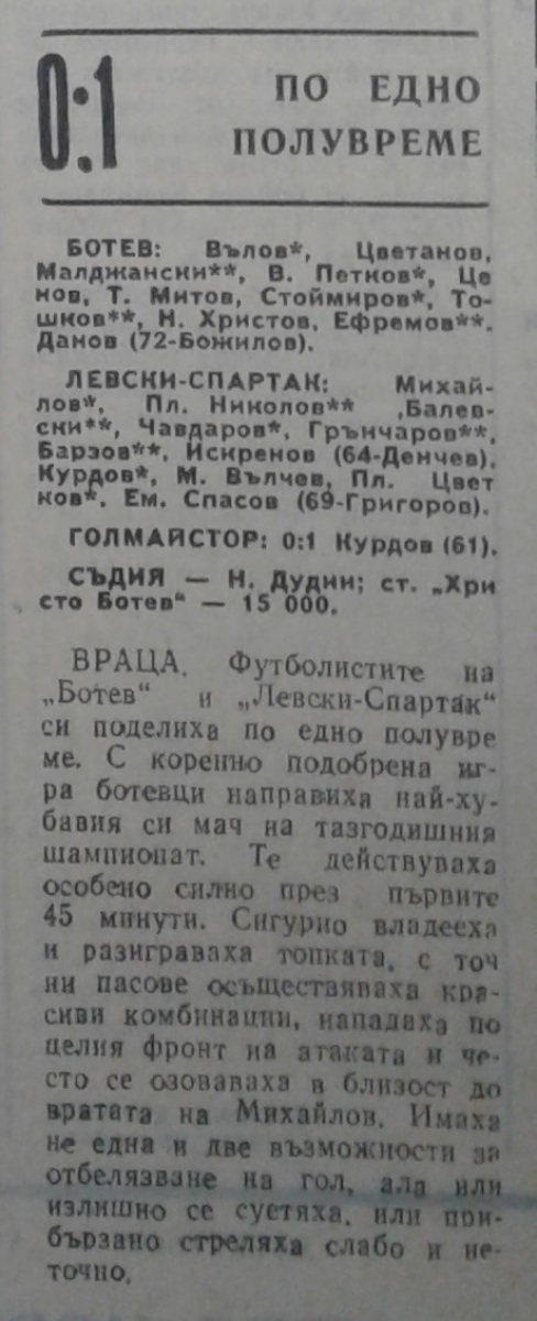 «Ботев» Враца - «Левски-Спартак» София - 0:1