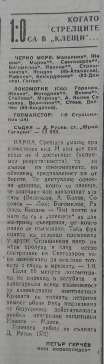 «Черно море» Варна - «Локомотив» София - 1:0