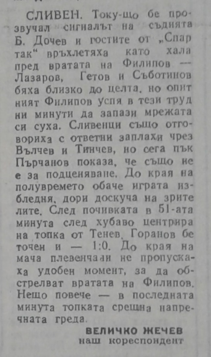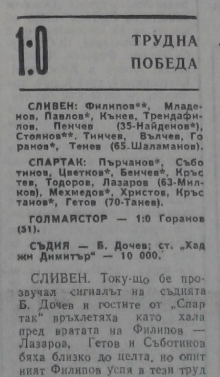 АФД Сливен - «Спартак» Плевен - 1:0