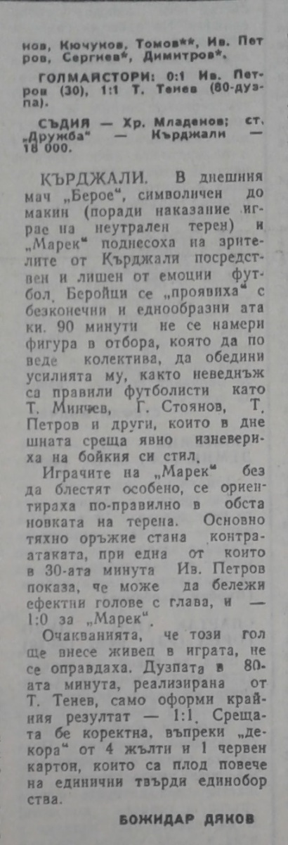 «Берое» Стара-Загора - «Марек» Станке-Димитров - 1:1
