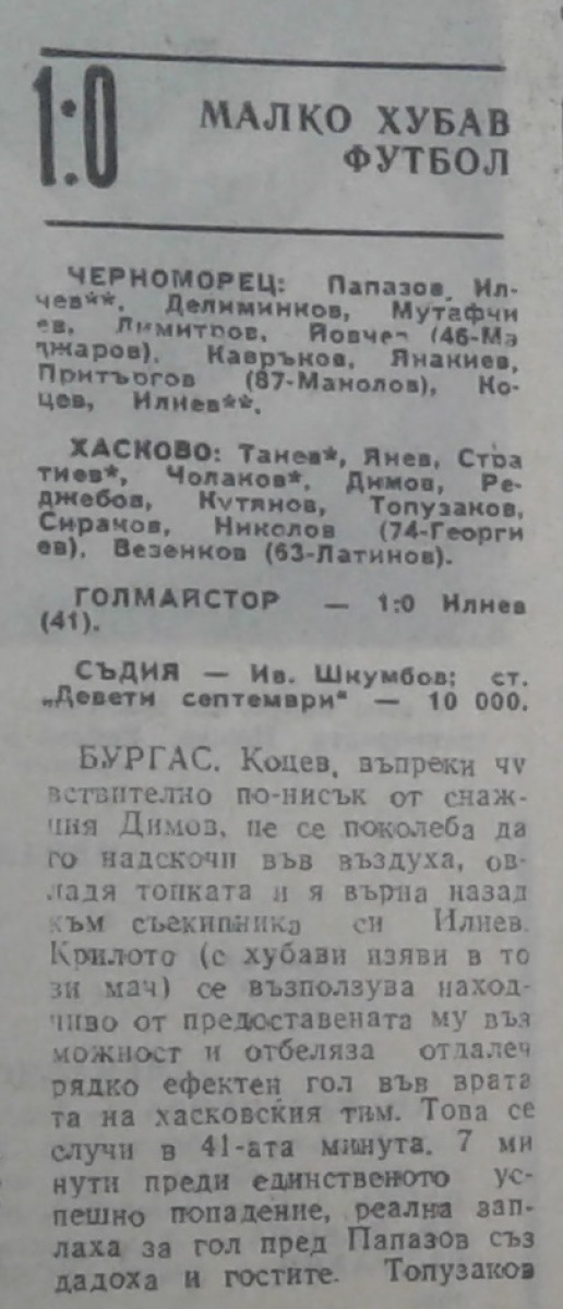 «Черноморец» Бургас - «Хасково» Хасково - 1:0