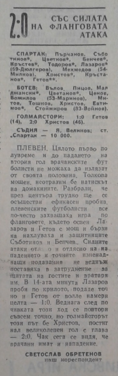 «Спартак» Плевен - «Ботев» Враца - 2:0