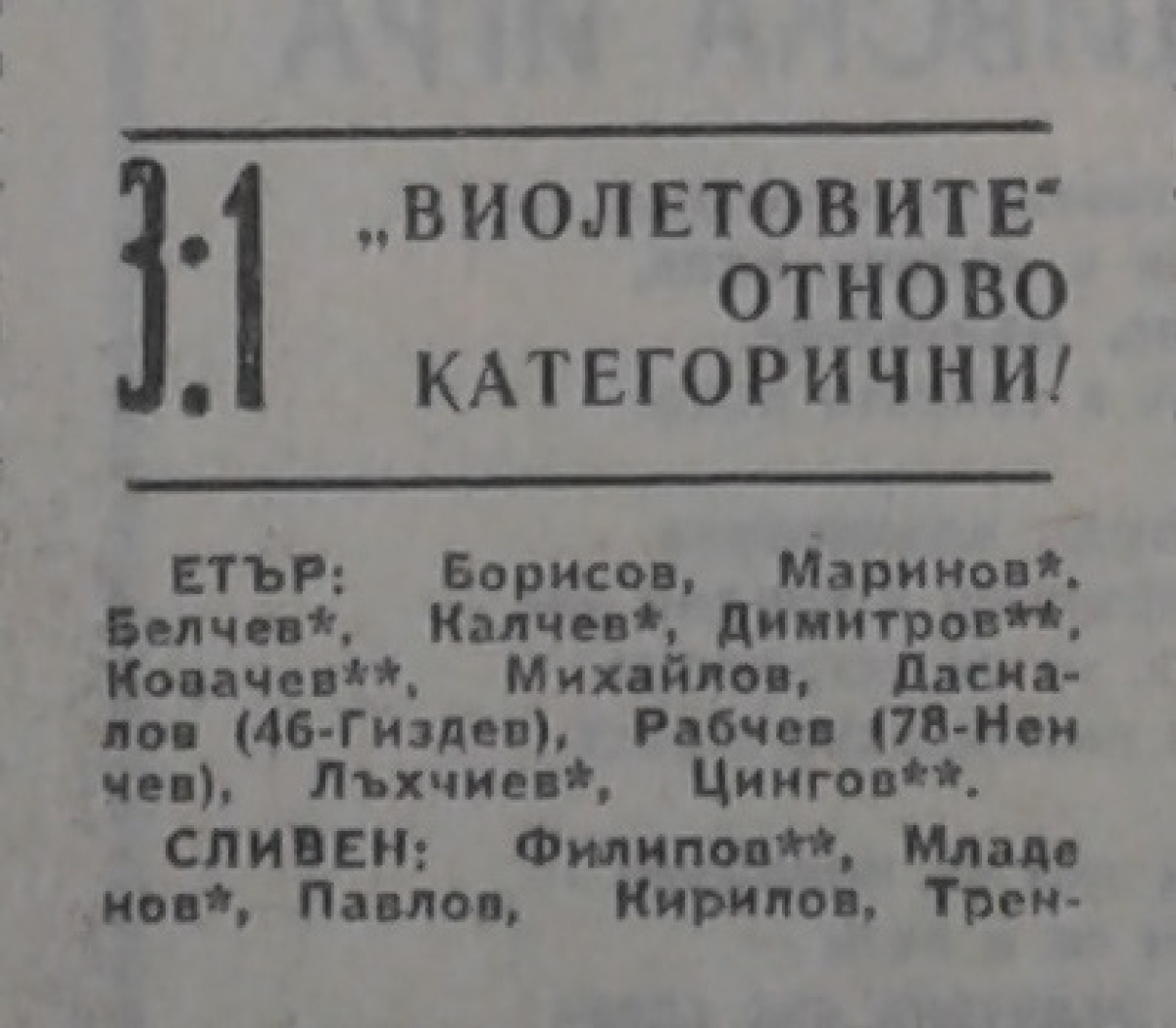 «Этыр» Велико-Тырново - АФД Сливен - 3:1
