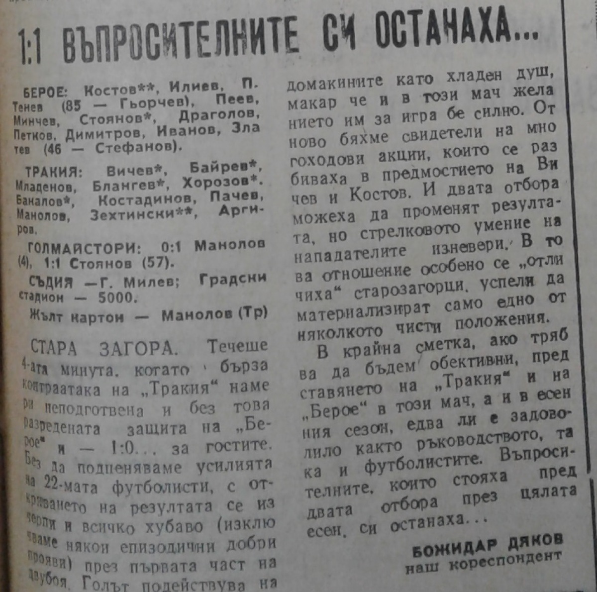«Берое» Стара-Загора - «Тракия» Пловдив - 1:1