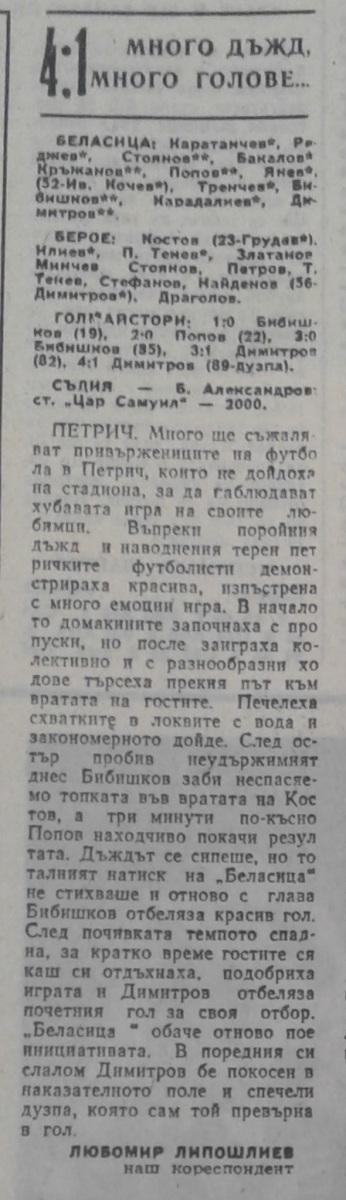 «Беласица» Петрич - «Берое» Стара-Загора - 4:1