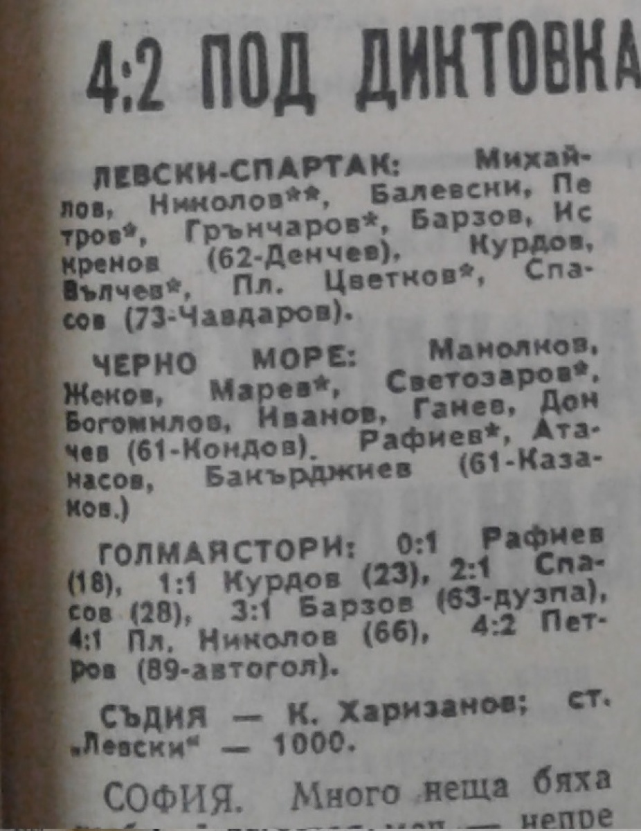 «Левски-Спартак» София - «Черно море» Варна - 4:2