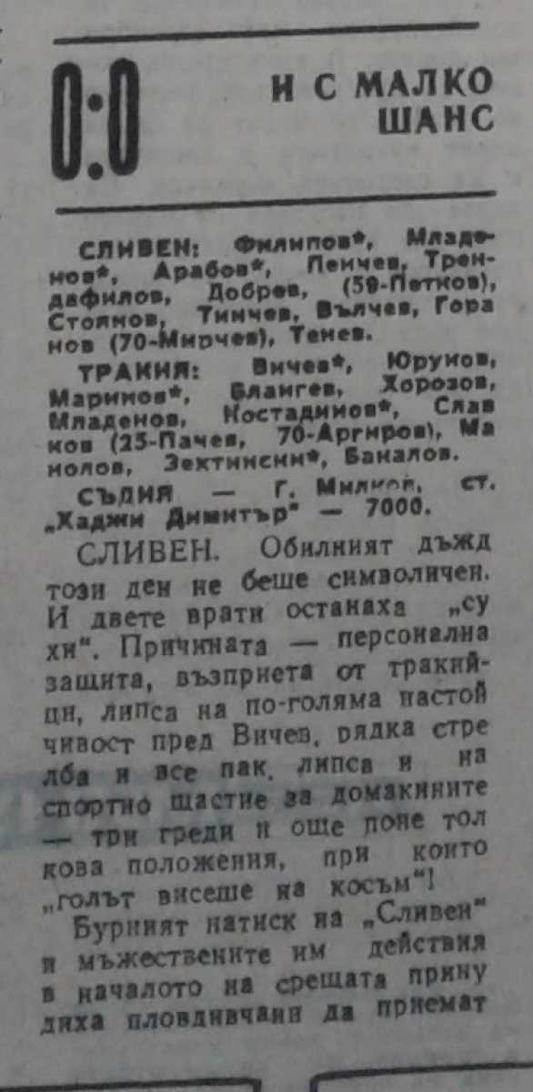АФД Сливен - «Тракия» Пловдив - 0:0