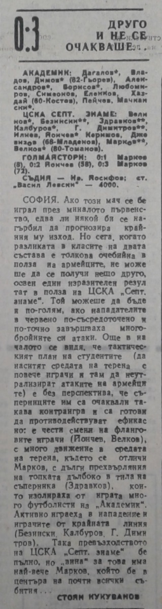 «Академик» София - «ЦСКА Септемврийско Знаме» София - 0:3