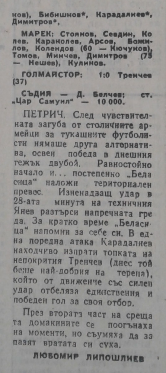 «Беласица» Петрич - «Марек» Станке-Димитров - 1:0