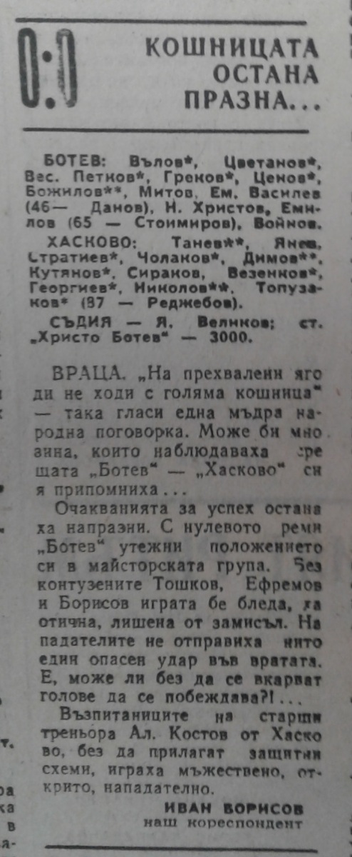 «Ботев» Враца - «Хасково» Хасково - 0:0