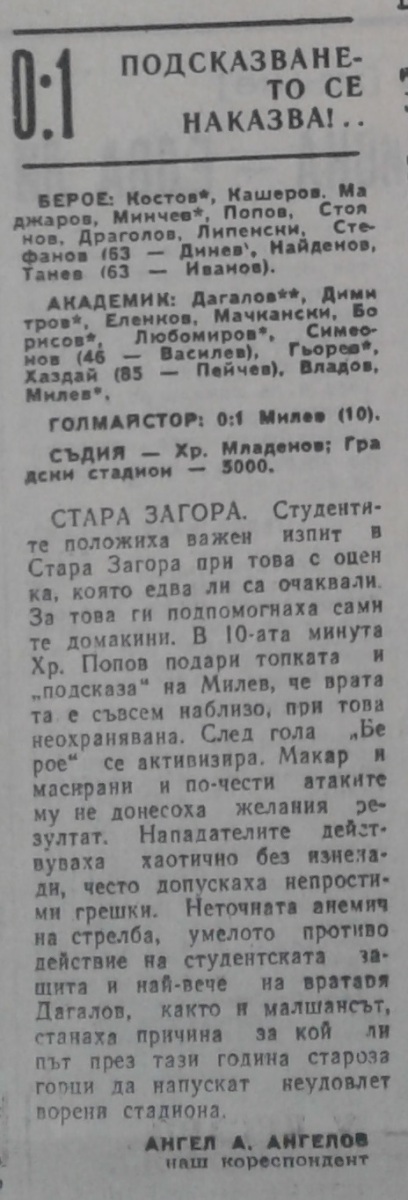 «Берое» Стара-Загора - «Академик» София - 0:1