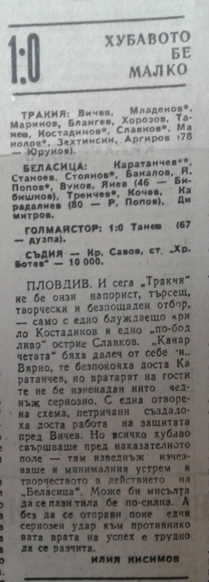 «Тракия» Пловдив - «Беласица» Петрич - 1:0