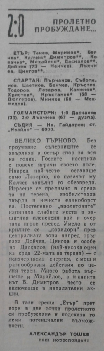 «Этыр» Велико-Тырново - «Спартак» Плевен - 2:0