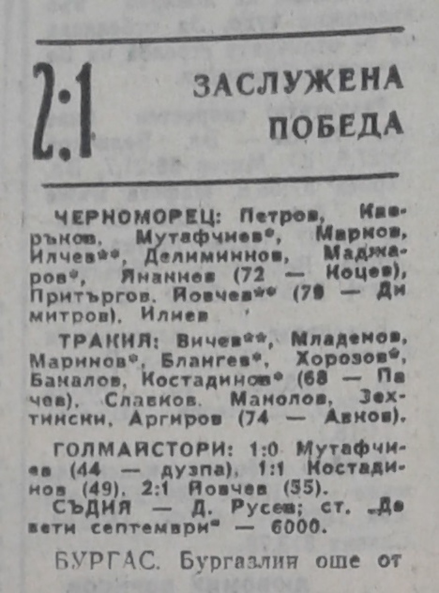 «Черноморец» Бургас - «Тракия» Пловдив - 2:1