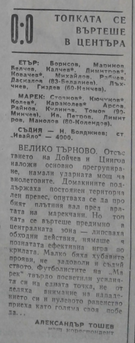 «Этыр» Велико-Тырново - «Марек» Станке-Димитров - 0:0