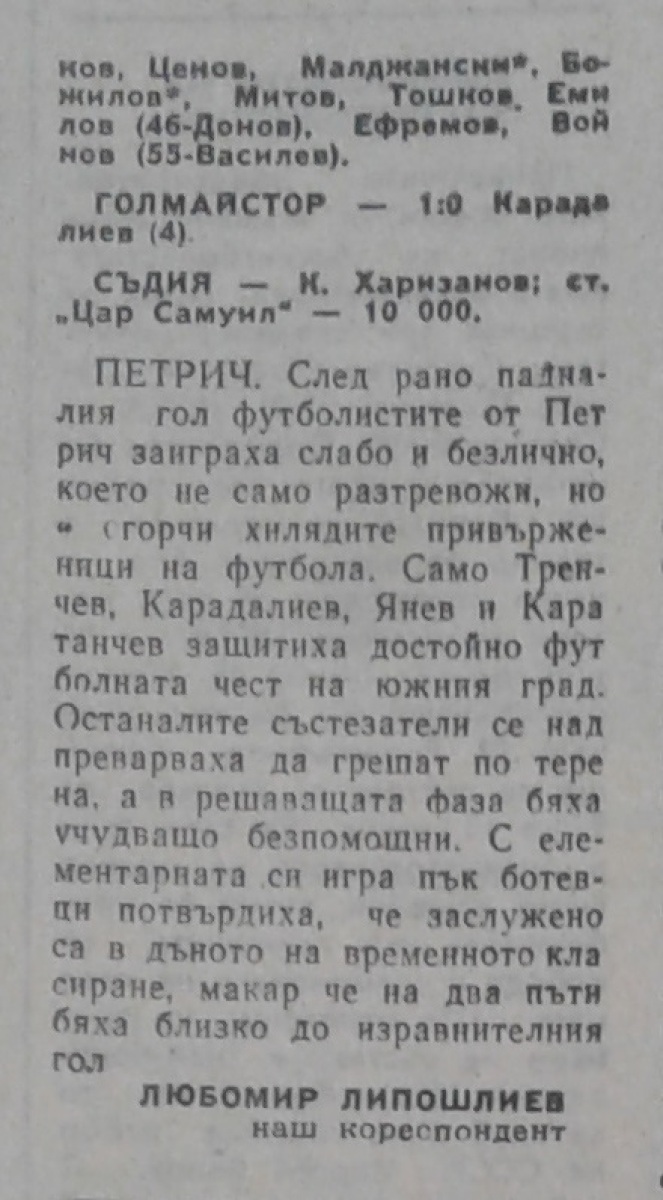 «Беласица» Петрич - «Ботев» Враца - 1:0