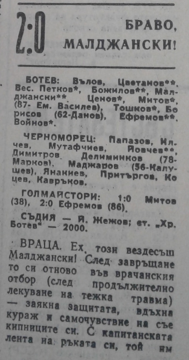 «Ботев» Враца - «Черноморец» Бургас - 2:0