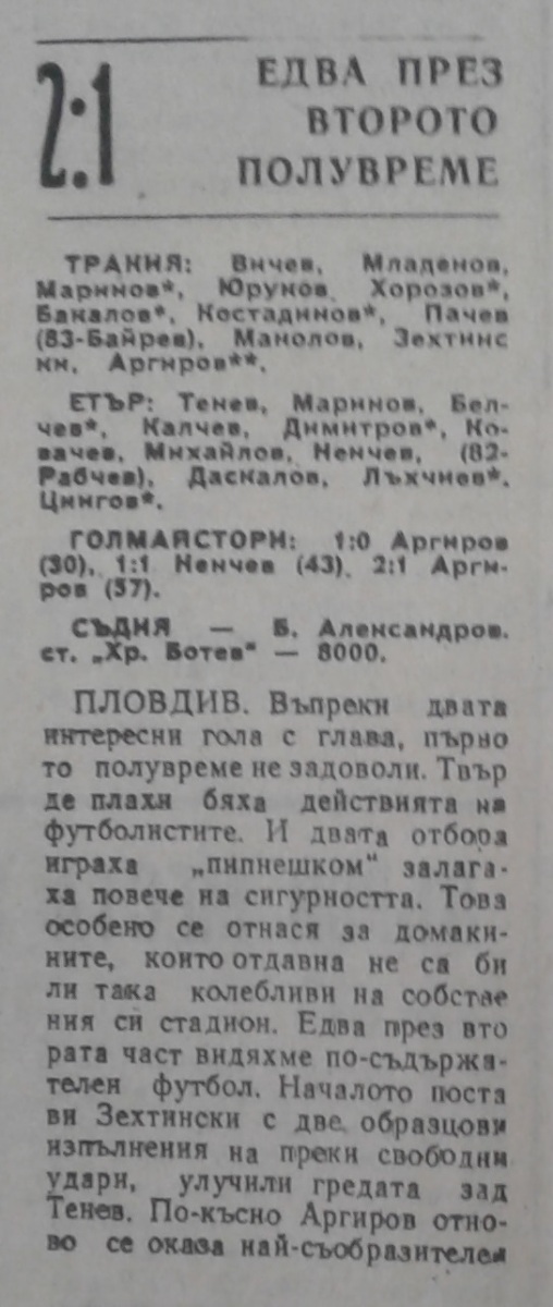 «Тракия» Пловдив - «Этыр» Велико-Тырново - 2:1