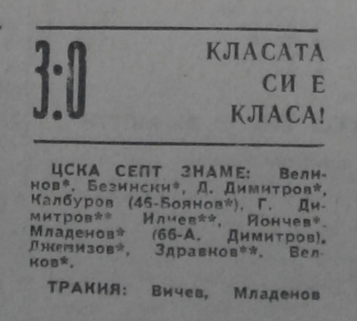 «ЦСКА Септемврийско Знаме» София - «Тракия» Пловдив - 3:0