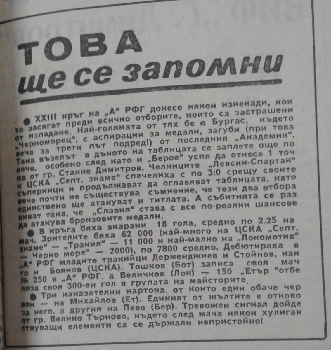 Николай Боянов (ЦСКА), Цветозар Дерменджиев (Тракия) и Ивайло Стойнов (Тракия) дебютировали в А РФГ.