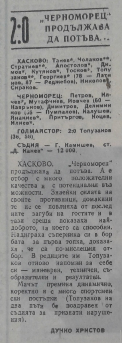 «Хасково» Хасково - «Черноморец» Бургас - 2:0