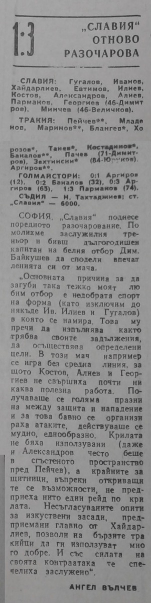 «Славия» София - «Тракия» Пловдив - 1:3